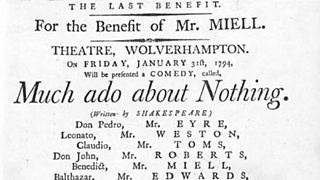 Much Ado About Nothing is Manager’s choice at Wolverhampton Theatre, 1794