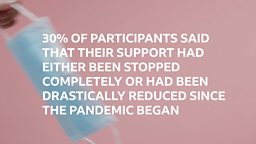 A survey in April 2020 by Inclusion Scotland discusses many issues including the fear that public bodies are not listening to us as a community. 30% of participants said that their support had been either stopped completely or had been drastically reduced since the pandemic began. 64% said that the pandemic has had an impact on getting the food and medicine they need to live.
