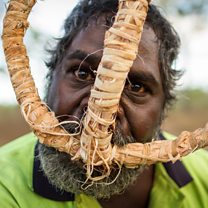 n Australia, Otto Campion wears the mask of the Night Owl spirit for the Dow ceremony, to teach the next generation respect for their land.