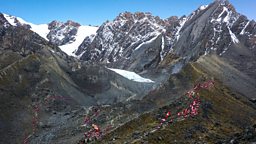 n Peru, ancient clans initiate new members at the sacred Qullqipunku glacier in the Andes. Part initiation, part baptism, this ritual is rooted in Incan tradition and now also fused with Catholic ceremony. Afterwards, the clans stream back down the mountain.