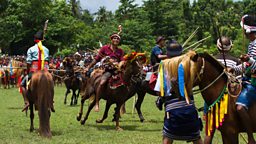 On the island of Sumba, it’s believed the ancestor spirits will deliver a good harvest if human blood is spilt. So for ‘Pasola’ farmers become warriors, riding into ritual battle armed with spears.