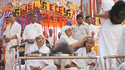 Jain nuns follow a path of extreme austerity in the belief it will liberate their souls. They own nothing, have no home, and aim not to hurt any living creature. At their initiation they must give up all family ties, and let go of all personal desires by allowing the hair on their head to be plucked out by hand.