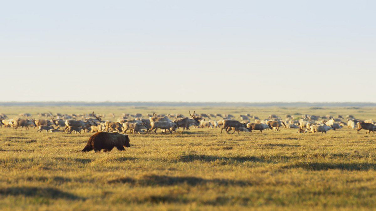We started filming and had three weeks on location under 24 hours of daylight – in one endless summer. It was an incredible place to be and witness one of the last great herds of caribou left. The migrations reminded me of wildebeest in Africa, and it is no wonder people describe this region as America's Serengeti. But this was an unseen world with no tourists or cars, which is almost unheard of. With no trees on the Tundra, one grizzly bear took a liking to the small plane we used to drop crews into position, and even used it as a back scratch! Luckily no one was in there at the time!