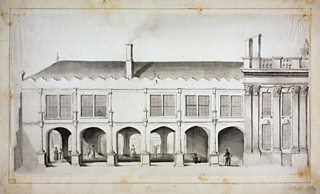 The late medieval Guildhall was located on the west side of Broad Street near St John's Gate. Fortunately some illustrations survive though the building was demolished in the mid-nineteenth century and replaced by a more lavish Victorian Gothic building, smaller by a third than the older hall.