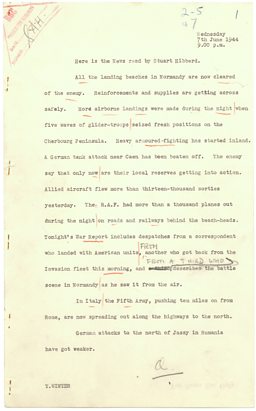 Read the hand-annotated BBC radio news scripts from June, 1944. These reports are held at The British Library and are available online here for the first time as a set.