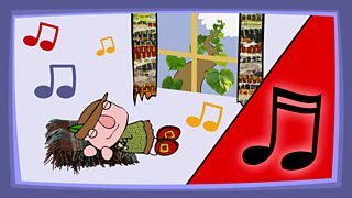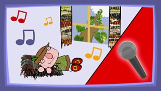 Practise singing And the beanstalk grew making sure that children sing the very lownotes and the slow, ascending scale in the chorus with accuracy.