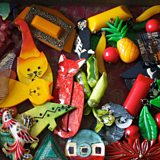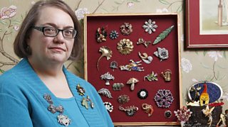 Joanna’s brooches range from Victorian to modern, flea market to Christian Dior, and her collection is ever-growing, with one unifying requirement: that she would wear them. "I wear all my brooches and I’ll buy one because I like the design, the colour, or it just speaks to me," she said. "Some are favourites and I wear regularly: an Art Deco style silver cat, a black and white flower by the modern designer Sue Gregor, a silver Möbius knot by Vinianna Torun Bülow for Georg Jensen and an unusual large green Art Deco Bakelite brooch. Some I buy just to go with something special, I have a Danecraft knitting brooch, as a knitter I just couldn’t resist that one."