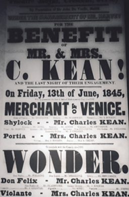 This playbill from the 13th of June 1845 describes the visit of a couple who were to become one of the most famous acting duos of the Victorian era, Mr and Mrs Charles Kean.