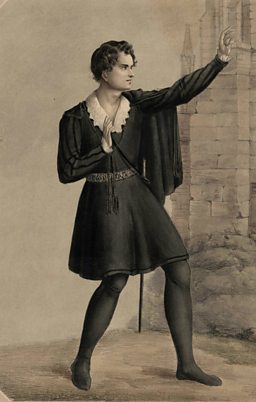 Charles Kean made his London debut in 1827 and after touring the provinces, went to America. It was on his return that he began to build his reputation and performed in Hamlet, Richard the Third and as Jaques in As You Like It.