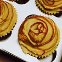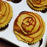 5. Hufenwch yr menyn ar siwgr eisin am ryw 5 muned mewn peiriant cymysgu ac yna ychwanegwch y caramel. Rhowch yr hufen ar ben y cacennau. Mwynhewch!