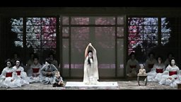 Butterfly's maid, Suzuki, dresses her mistress for her wedding night. Although wounded by her uncle's curses, Butterfly has fallen in love across the cultural chasm, becoming helpless in devotion and duty to her new American husband. Pinkerton's fallen in lust, but could his cynical feelings turn to real love?
