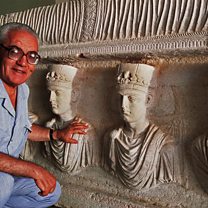 Khaled al-Asaad in 2002 in front of a rare sarcophagus dating from the 1st century | © Marc DEVILLE / Gamma-Rapho via Getty