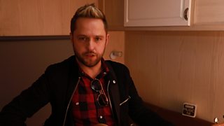 Irish Country Music singer Derek Ryan performs 'Hold On To Your Hat' and the 'Wrong Side of sober' in a caravan, backstage at Stendhal.
