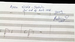 The composer has donated a page of the manuscript of his opera Anna Nicole to the Children in Need Appeal. The extract is the start of the chorus at the end of Act 1.