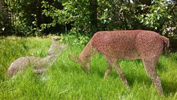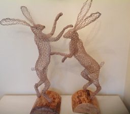 She is currently working on a series of sculptures that will feature in an exhibition at a local beauty spot's visitor centre. She has made a dozen dogs, which she started making in January, and the centre piece will be a pair of over-sized boxing hares.