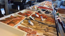 The fish shop sells dried cod, a local speciality, and has a huge pool containing oysters and crabs.