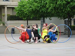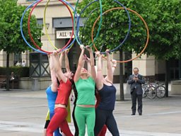 You could use banners, whistles, streamers, stick-on moustaches, matching outfits etc. to animate your performance and grab people’s attention. Consider holding a workshop beforehand where everyone can get together to make what’s needed.