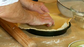 Cuir am flùr agus an t-ìm dhan bhobhla agus geàrr suas an t-ìm na bhìdeagan le sgian. Suath an t-ìm a-steach dhan fhlùir agus dòirt a-steach steall uisge – dìreach gu leòr airson a h-uile sian a thoirt còmhla. Cuir an taois dhan fhuaradair airson mu leth-uair. An uair sin, bidh an taois deiseil airson roiligeadh a-mach.