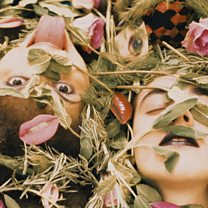 The flag references her earlier collage work from 1976 featuring a salad "cut out from a cookery magazine" with women's eyes and mouths superimposed on it. The new work updates this premise with herbs she found at Chatsworth House.