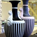 Adhesive is applied to the Panther figurine to attach it to the vase.