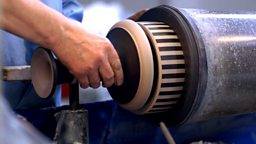 Neil must work quickly as he only has a 10 second window to fix the neck to the base before the adhesive dries.