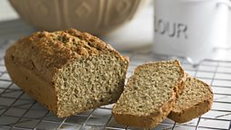 Add the lemon and orange rind spices, and finally the sultanas and cherries, use a little milk to adjust the consistency. Transfer to a well-lined 230mm (9inch) cake tin and bake at 180°C/350°F or Regulo 4 for half an hour. Reduce to 150°C/300°F or Regulo 2 until cooked (approximately 1½ hours) or until a skewer is dry when removed from the cake. Decorate with fruits or marzipan.