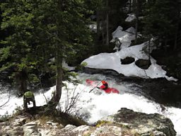 BBC films daredevil kayakers running big waterfalls on Oh Be Joyful Creek, Colorado