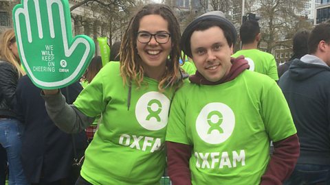 Amy and Charles went to the London Marathon with Oxfam to cheer on all the runners passing through the 23rd mile. They have both volunteered as festival stewards in the past, and decided to help out at the London Marathon too.