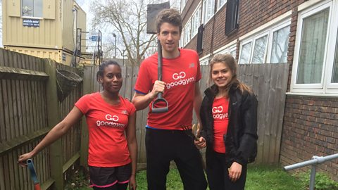Greg James joins some volunteers from GoodGym who help out in older people's gardens.