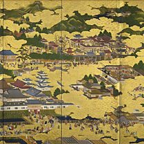 These glittering Japanese painted screens – a genre known as "rakuchû rakugai-zu" or "scenes in and around Kyoto" – are extraordinary documents of everyday life in the 17th century Japanese city.