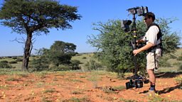 By adapting and miniaturizing this system and hanging the camera beneath it, almost at ground level, cameraman Toby Strong was able to film a unique point-of-view perspective of one of the most vital learning experiences in the lives of young meerkats.