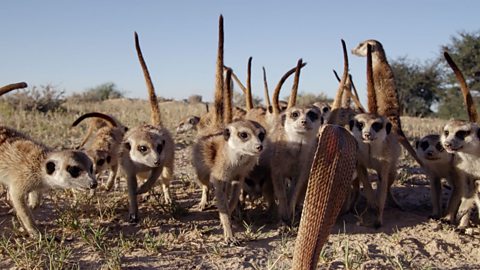 New filming techniques allow a meerkat's view of an encounter with a cobra.