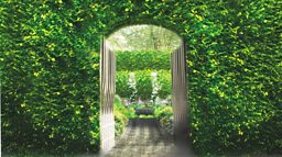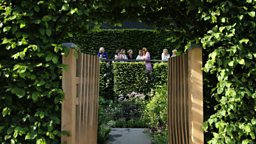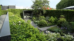 This secret garden designed by Darren Hawkes can be glimpsed through a wooden gate and slots in the perimeter hedge, before being fully revealed from a uniquely elevated position at the back of the garden.