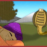 It spreads its hood, thus shielding the sleeping Nanak from the hot sun