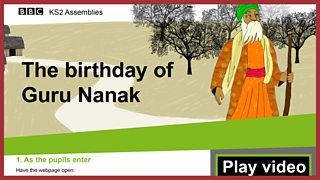 | 2. Introduction | Find some items that children might connect with a birthday - eg candle, card, party hat, etc - or display the image from 'Key links'. Show the clues to the children and ask them to say what connects each item. Explain that at about this time of year there is a special birthday - celebrated by Sikhs all around the world - the birthday of Guru Nanak. Guru Nanak was born over 500 years ago and is revered by Sikhs as the founder of their religion. Ask pupils to think about why Guru Nanak is such an important person within the Sikh religion as they watch the video. |