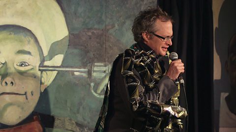 Comedian Simon Munnery sings a song about cider and tells of trying to please his dog.