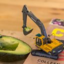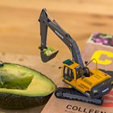 He recreates scenes in miniature, many of them with a building theme, giving a giant and humorous perspective on everyday life, whether that's excavating an avocado with a mini digger or using tiny pots of red paint for a manicure.