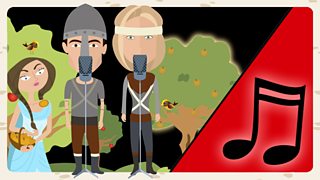 | 00 00 | Tapping out the rhythm of the song title - 'Apples of Iduna' - and finding out about Iduna and the magic of the apples in her orchard. |