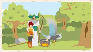 In Parts 1 and 2 of the story Odin and Loki journey to Midgard and when lunchtime comes Odin orders Loki to use his skills to make a pot of stew. The stew will not cook and a great eagle in the trees above them reveals that he has put a spell on the pot...and they must allow him to share the food. When the eagle takes too much Loki beats him...only to be carried into the air. Later the eagle reveals that he is in fact Thiassi - king of the giants - and he wants Loki's help in a plot against the gods. Loki must persuade the goddess Iduna to come out of her garden with her magic apples so that Thiassi can seize her. The gods rely on her magic apples for their everlasting youth and deprived of them they will grow old and frail.