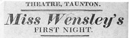 In the same way that stars from the London theatres toured the main cities, Somerset looks to Bristol to welcome the actress Miss Wensley.