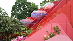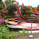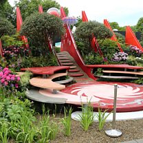 It combines architecture and planting in a conceptual East-West landscape with a dramatic 'Silk Road' bridge linking the various elements of the garden.