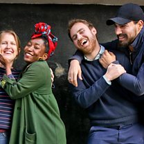 Former hosts Mae Martin and Bisha K Ali with Steve Ali and Ned Sedgwick,