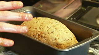 Nuair a tha an taois air atharrachadh agus air at, agus a’ leum air ais nuair a bhrùthas tu do chorrag oirre, tha i deiseil airson a dhol dhan tiona. Cuir suathadh de dh’ola air tiona (lof) dà phunnd. Roilig an taois agus cuir dhan tiona i le còmhdach clingfilm. Feumar suathadh de dh’ola a chuir air an clingfilm cuideachd airson dèanamh cinnteach nach steig an taoise. Fàg an lof airson co-dhiù uair a thìde gus am bi am meudachd air dùblachadh. An uair sin cuir suathadh de dh’ugh air a bhualadh air a h-uachdar agus crathadh de shìol neòinean-grèine.