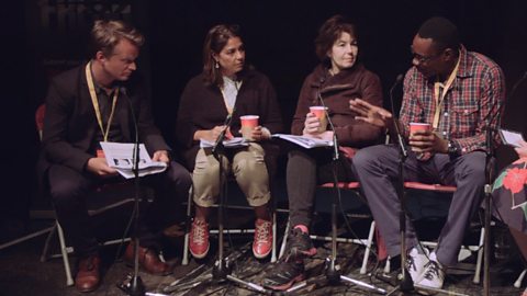 Sheffield Doc/Fest, June 2014. Six emerging filmmakers have pitched for three £3,000 commissions to make a short documentary for BBC Fresh Online. Now the judges gather to critique the ideas and decide which three filmmakers will be selected to make their films. In addition to funding, the winning filmmakers will also receive mentoring from BBC producers and a day in the edit with a professional editor at BBC North in Salford to finish their film.