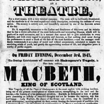 The playbill proclaims that audiences will have the pleasure of enjoying the full five acts of Macbeth, as sometimes the travelling companies performed abbreviated versions for fairground performances and even advertised their programme with short extracts.