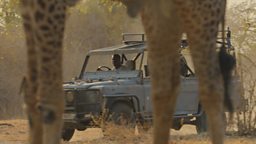 It was a two-hour off-road drive to get to the giraffe. Once on location and with the giraffe in sight, Dr Mwamba has only minutes to run through possible scenarios, while Gareth co-ordinates the rope team. Dr Mwamba needs to sedate the giraffe using a dart gun – but in this terrain, if the darted giraffe bolts into the scrubby bush he will be almost impossible to track; if he stumbles close to the river, he could roll down the bank and drown; predators like lions could be waiting in the long grass… and it’s all against the clock. If night falls before they can rescue this giraffe, the team may not find him again tomorrow. Which would be a death sentence.