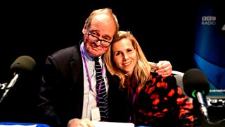 John Lloyd and Sally Phillips with Rory Bremner, Nikki Bedi and Pete Brown.