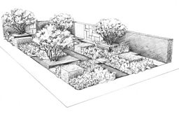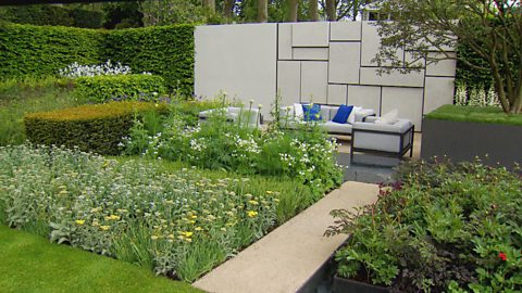 Marcus Barnett has designed a garden inspired by the De Stijl Movement. The garden reflects strong rectilinear geometry with coloured blocks contributing colour and textural relief, whether viewing from within or when viewed from above. Contrasting colours and tones surround a series of differing scaled waterways. Trees and hedges introduce vertical detailing, sculptural form and dappled shade.