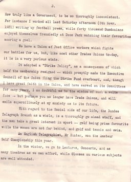 Page 3 of telegraph clerk, Annie K. Lamont's letter from 1921