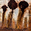 Kiefer’s 2016 painting Böse Blumen shows a series of high towers in a desolate landscape, their tops bursting into black smoke. Looking closely at the painting, Schama notes: “There are names written in Kiefer's spidery hand. Great figures of all the Germanic peoples from history, culture, art. Painters like Dürer, generals like Wallenstein, an indiscriminate gathering of both the gifted and the dangerous.”